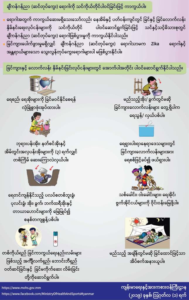 Key Messages အခြေခံကျန်းမာရေးဝန်ထမ်းများ သိရှိလိုက်နာရမည့် ရာသီတုပ်ကွေးရောဂါဆိုင်ရာ အဓိကအချက်အလက်များ (ဇူလိုင်လ၊ ၂၀၁၉ ခုနှစ်) November 19, 2019 Ronalki Leave a comment