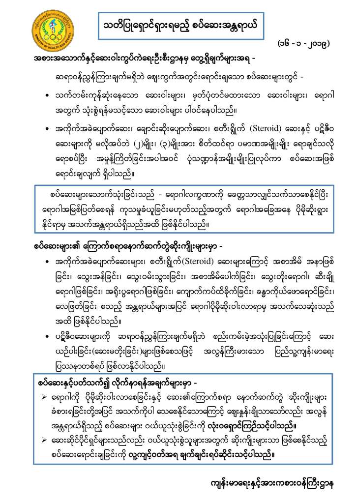 Key Messages သတိပြုရှောင်ရှားရမည့် စပ်ဆေးအန္တရာယ် အဓိကအသိပေးချက် Image November 19, 2019 Ronalki Leave a comment